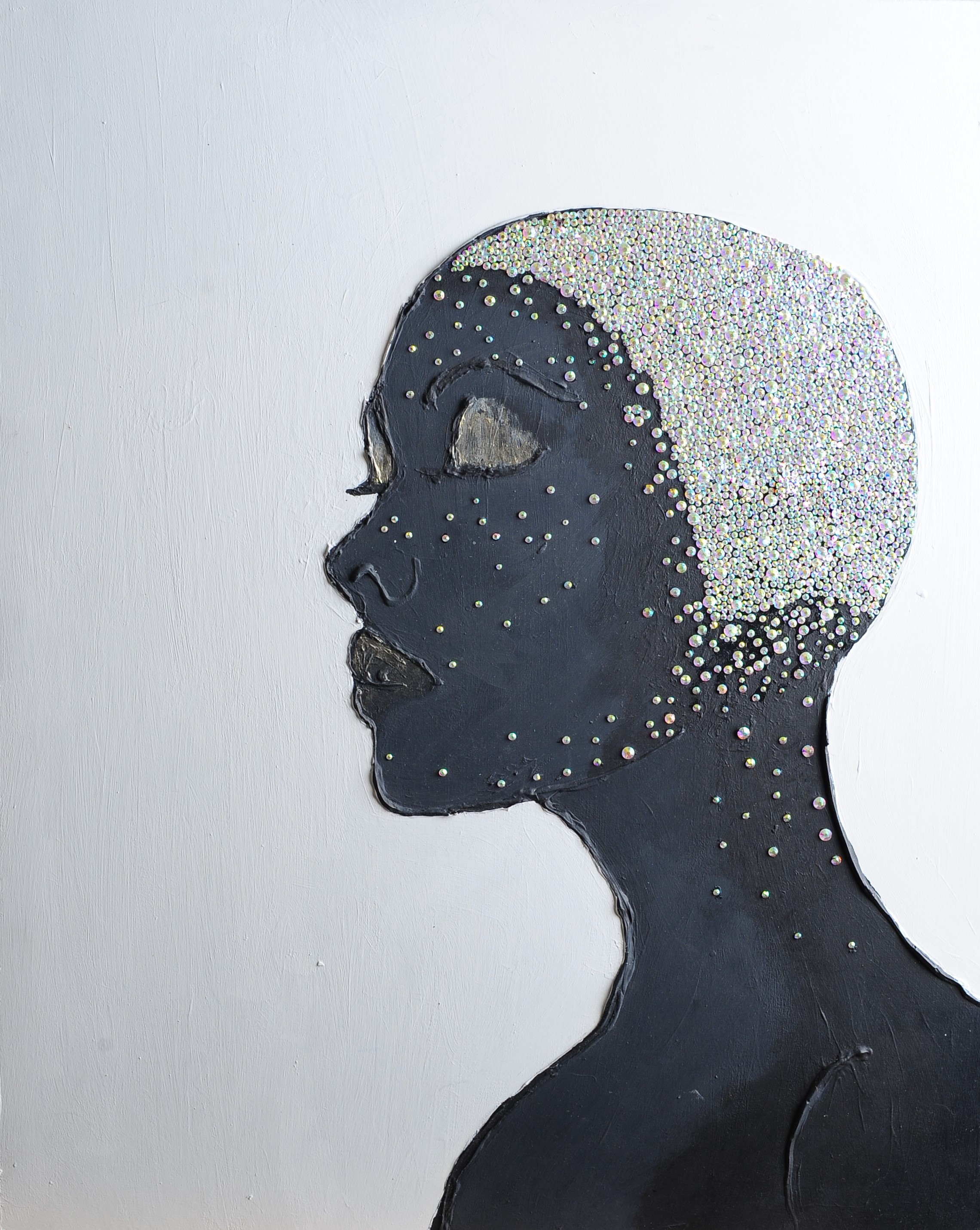 Картина «Сияние» — это отражение внутреннего мира, спрятанного за мерцающим фасадом. Стразы на голове девушки словно звёзды, освещающие её эмоции, воспоминания и мечты, но не раскрывающие их полностью. Они притягивают взгляд, но оставляют вопросы без ответов. Свои тайны она открывает лишь избранным, тем, кто способен заглянуть глубже. Картина заставляет задуматься: насколько мы готовы показать свою истинную сущность, и что остаётся скрытым за сияющей маской.