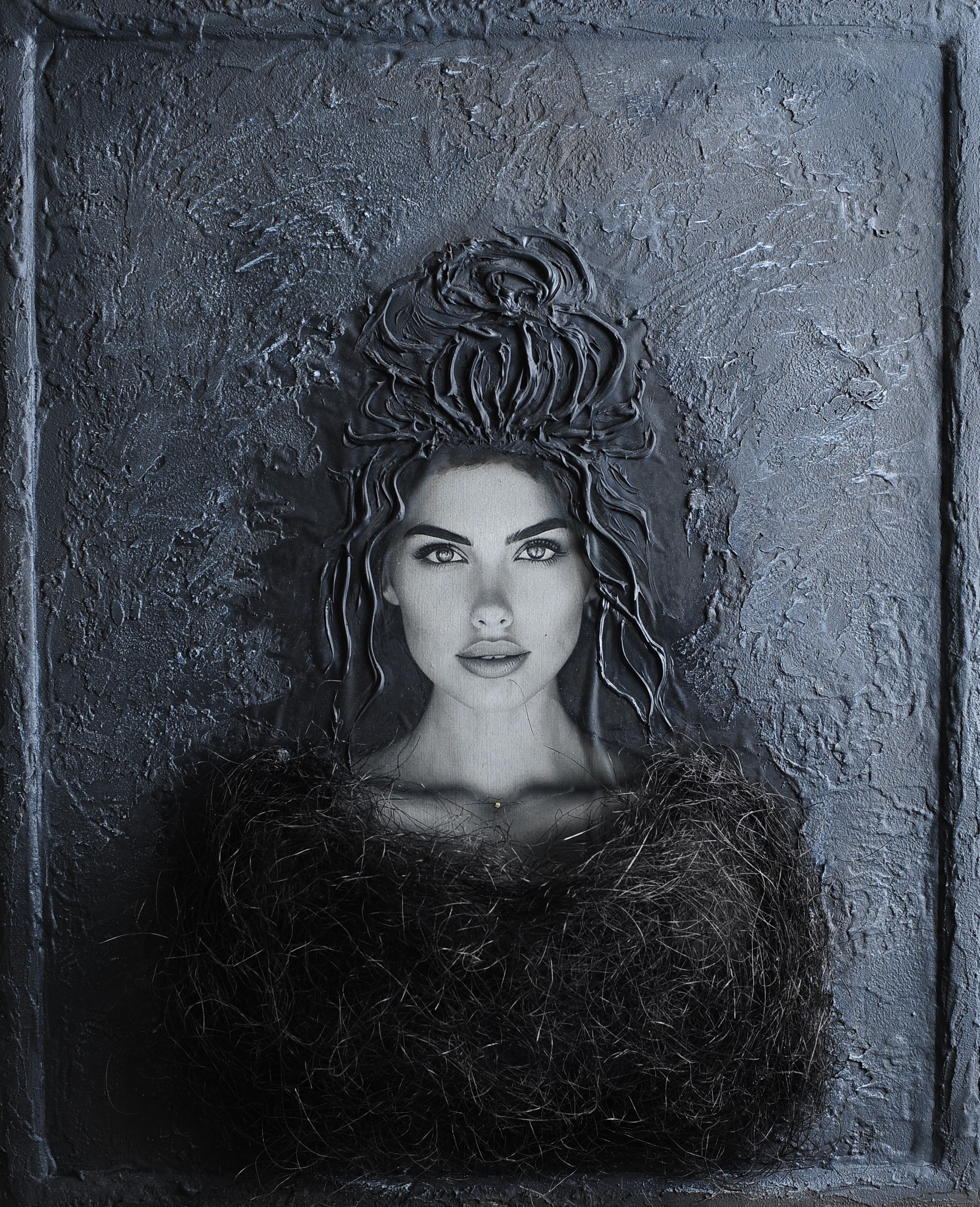 В мире теней и недосказанности она — свет и ясность. Её красота не требует доказательств, её уверенность не нуждается в одобрении. Страза на шее — знак самоуважения, невидимая корона. Мягкая паутина на её теле словно защищает её тонкость и нежность, не пряча силы. Она знает, кто она есть — и в этом её величие. Её притягательность для мужчин и зависть женщин — лишь отражение её внутреннего сияния.
